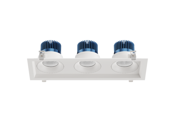 | VOR35 | 3Head | 15W | 5CCT Select | 120-277V | 15° | Hex Louver | White Plate/White Trim | EM |